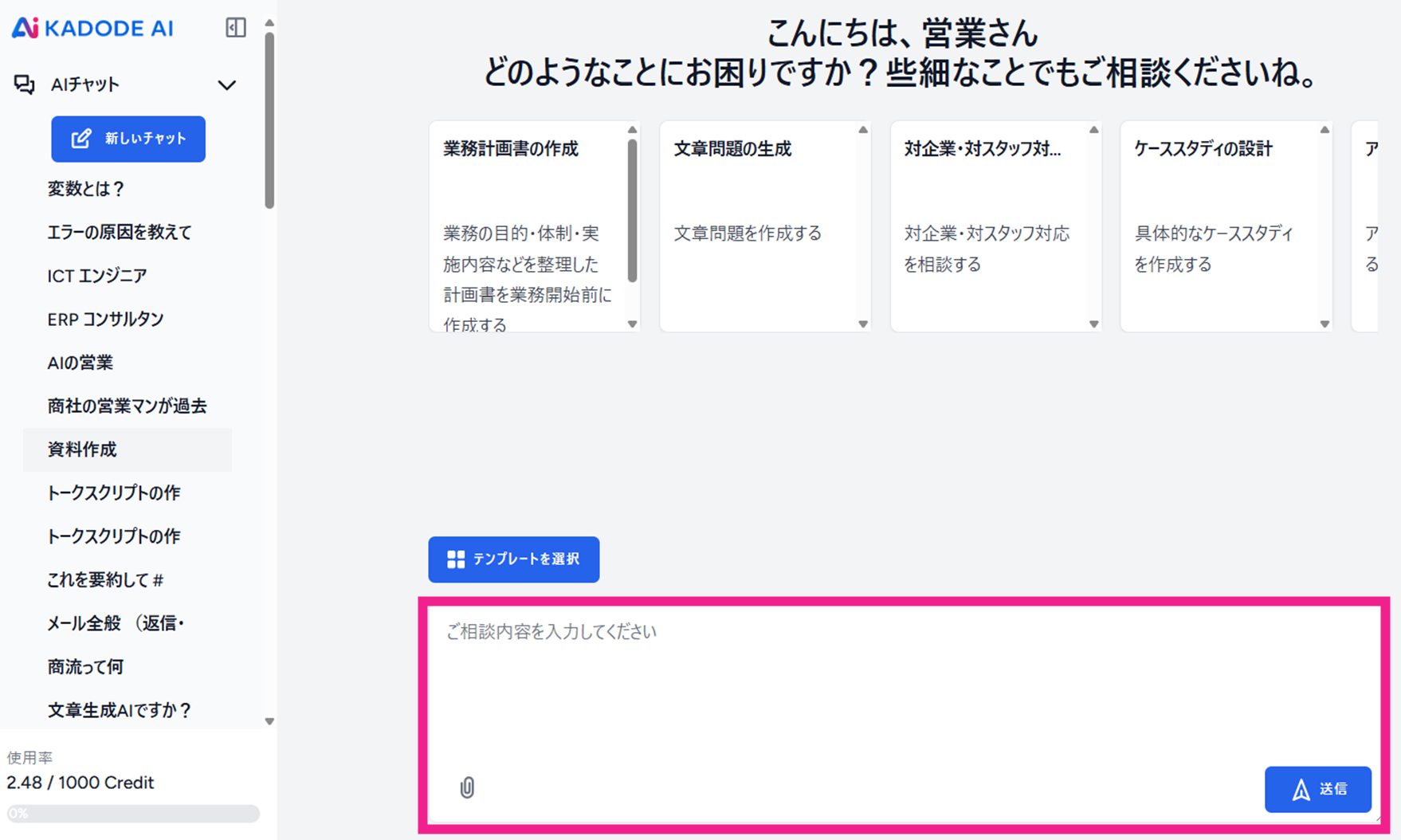 ChatGPTなどと同様に、チャット形式によるやりとりが可能